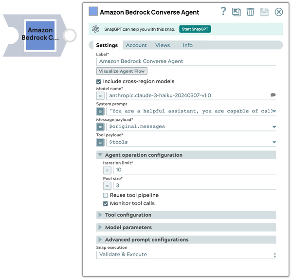 After we have the tools set, let’s look at the Agent Snap, using the Amazon Bedrock Converse API Agent Snap as an example.