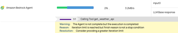 Iteration limit reached warningIn the Agent Snap, there is an Iteration limit setting, which limits the number of iterations the Agent can run. If the user provided a smaller limit, which caused the Agent to stop while the LLM is still awaiting tool calls, this warning would pop up to signal the user that the execution is incomplete.
