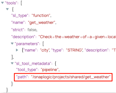 { "name": "get_weather", "parameters": { "city": "New York City" }, "sl_tool_metadata": { ... } }