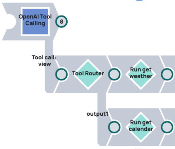 When a tool call is requested by an LLM, the LLM will provide the name of the tool to call and the corresponding parameters to call. The Agent Snap will unwrap the parameters and send them directly to the tool pipeline.