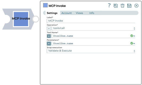 MCP Invoke SnapThe MCP Invoke Snap enables users to perform operations such as tools/call, resources/list, and resources/read to an MCP server.