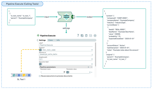- What it does: Dynamically invokes the selected SnapLogic pipeline and returns structured outputs.