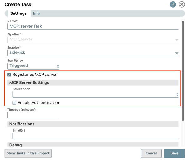 (Note: This capability currently requires a Groundplex, not a Cloudplex.) - Select your MCP pipeline.