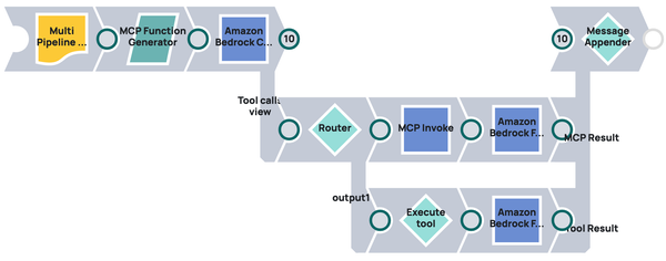MCP Client Snaps can be used together with AgentCreator Snaps, such as the Multi-Pipeline Function Generator and Pipeline Execute Snap, as SnapLogic Functions, tools. This allows users to use tools provided by MCP servers and internal tools, without sacrificing safety and freedom when building an Agent.