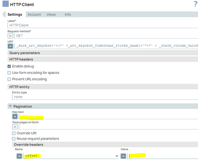 terrible_towel - If you have specified any of the query parameters in your original URI, I suggest you move them to the Query Parameters settings. This will make the pagination configuration simpler.