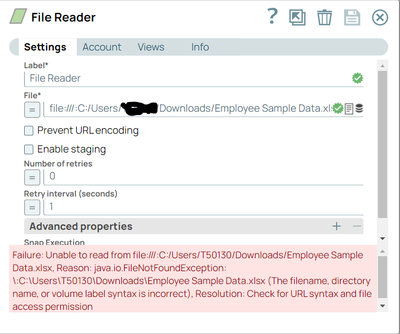When using the file:/// protocol, the file access is conducted using the permissions of the user in whose name the Snaplex is running (by default Snapuser ).